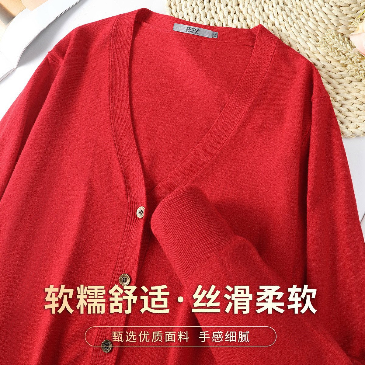 雪中飞红色毛衣开衫女春装2026含绵羊毛新年拜年服本命马年衣服PC