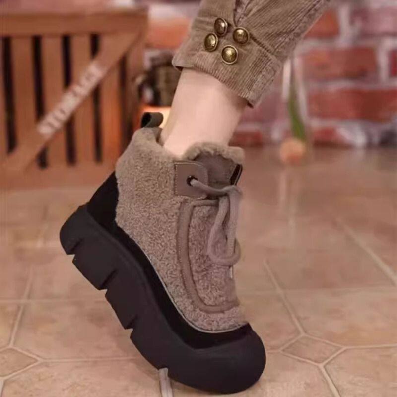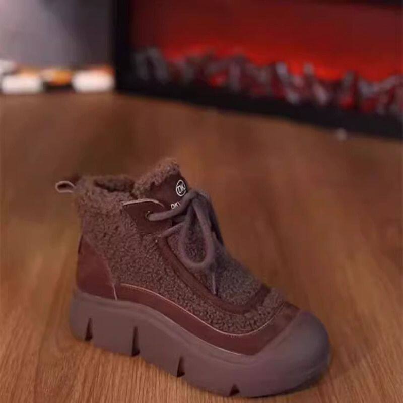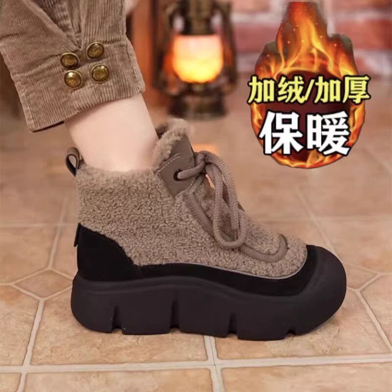 三福英伦风羊羔毛马丁靴女冬季新款厚底增高棉鞋软底妈妈短靴防水