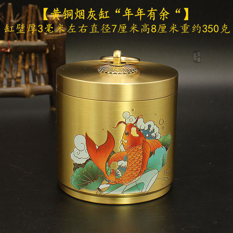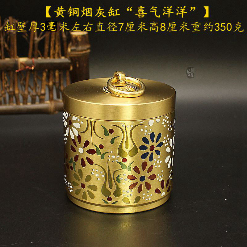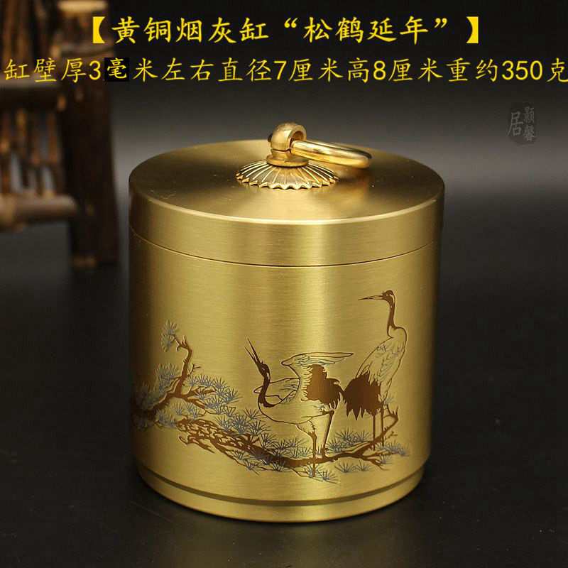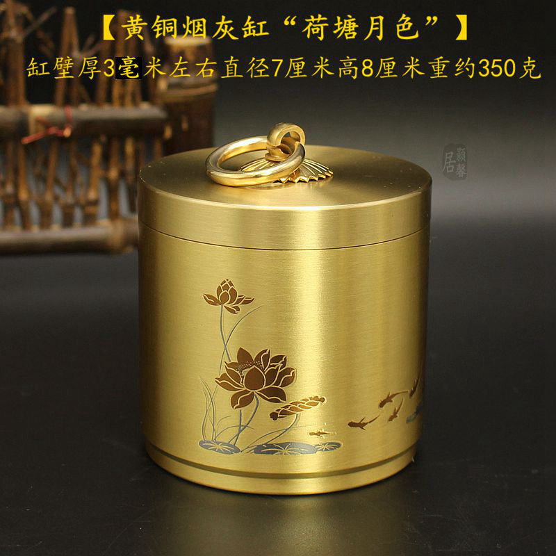 纯黄铜烟灰缸男生礼品中式时尚带盖防风烟缸车载烟碟加厚家用客厅