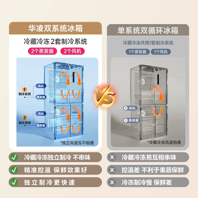 美的出品华凌神机547双系统超薄零嵌家用四门制冰无霜一级电冰箱