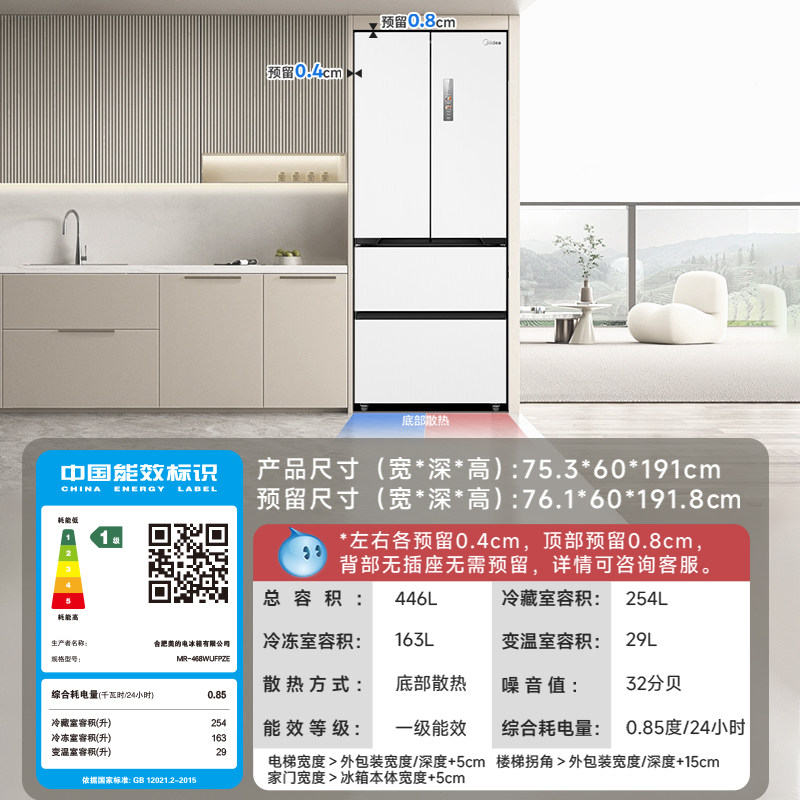 美的468法式冰箱以旧换新补贴家用超薄嵌入一级节能风冷无霜智能