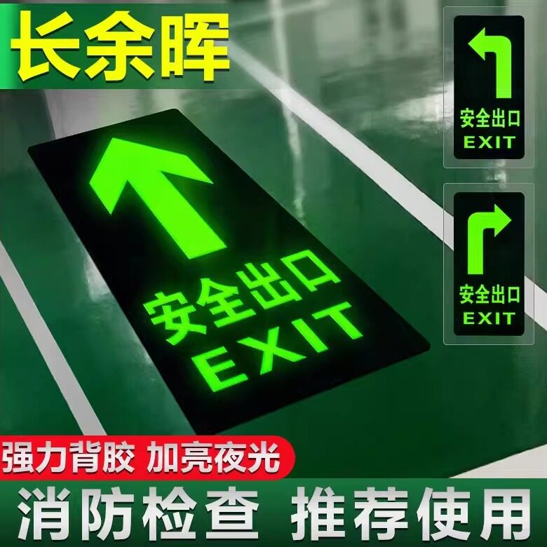 安全出口地贴夜光消防标识标牌箭头指示牌疏散应急通道标志警示牌消火栓墙贴紧急逃生楼梯免接电自发光标贴纸