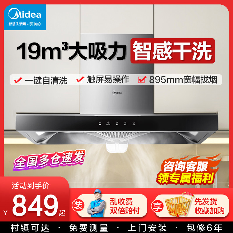 美的抽油烟机家用厨房顶吸式欧式大吸力自动清洗抽烟机官方旗舰店