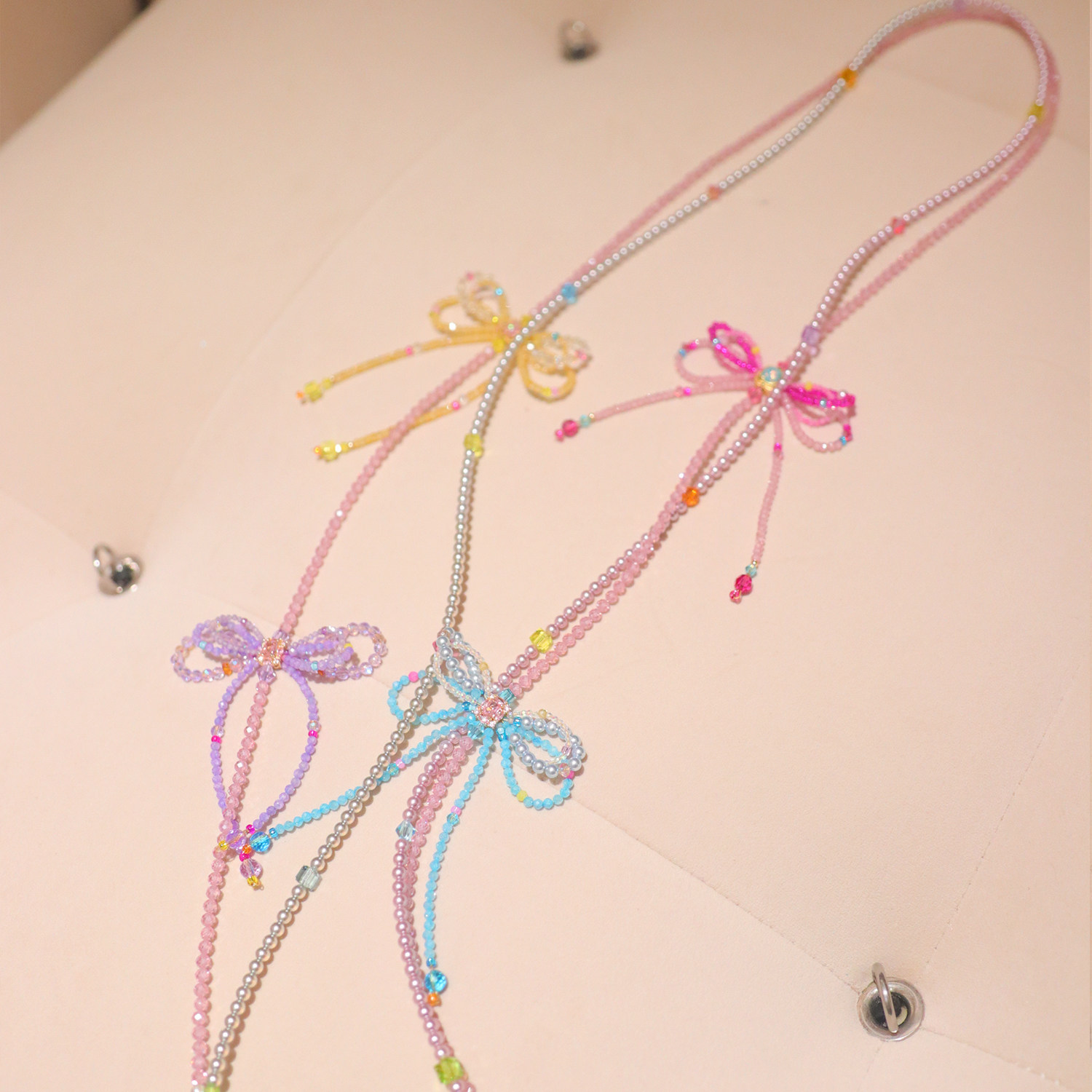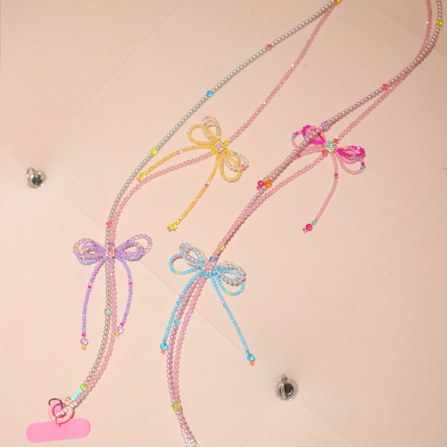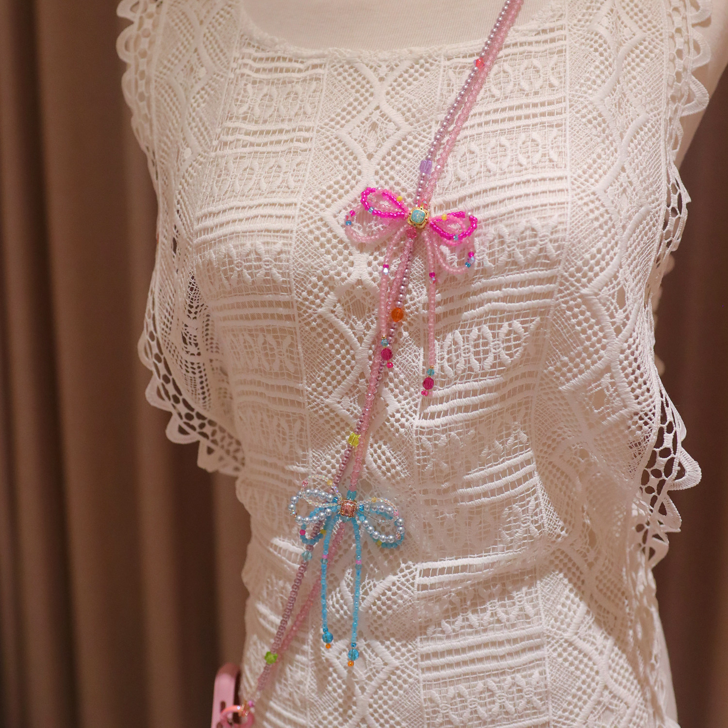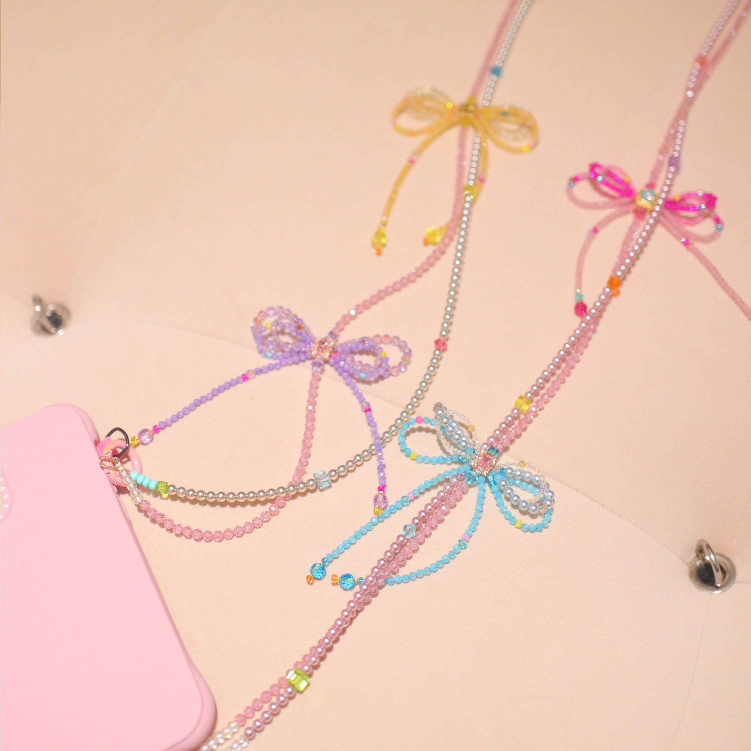 超重工!精致蝴蝶结造型人造水晶锆石施家珍珍双层斜挎手机链包链