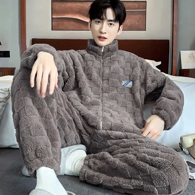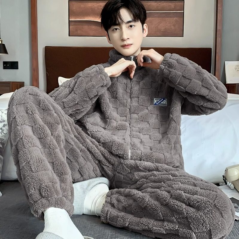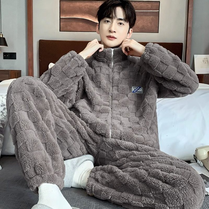 秋冬款睡衣男士珊瑚绒加绒加厚保暖法兰绒冬季家居服男款冬天套装