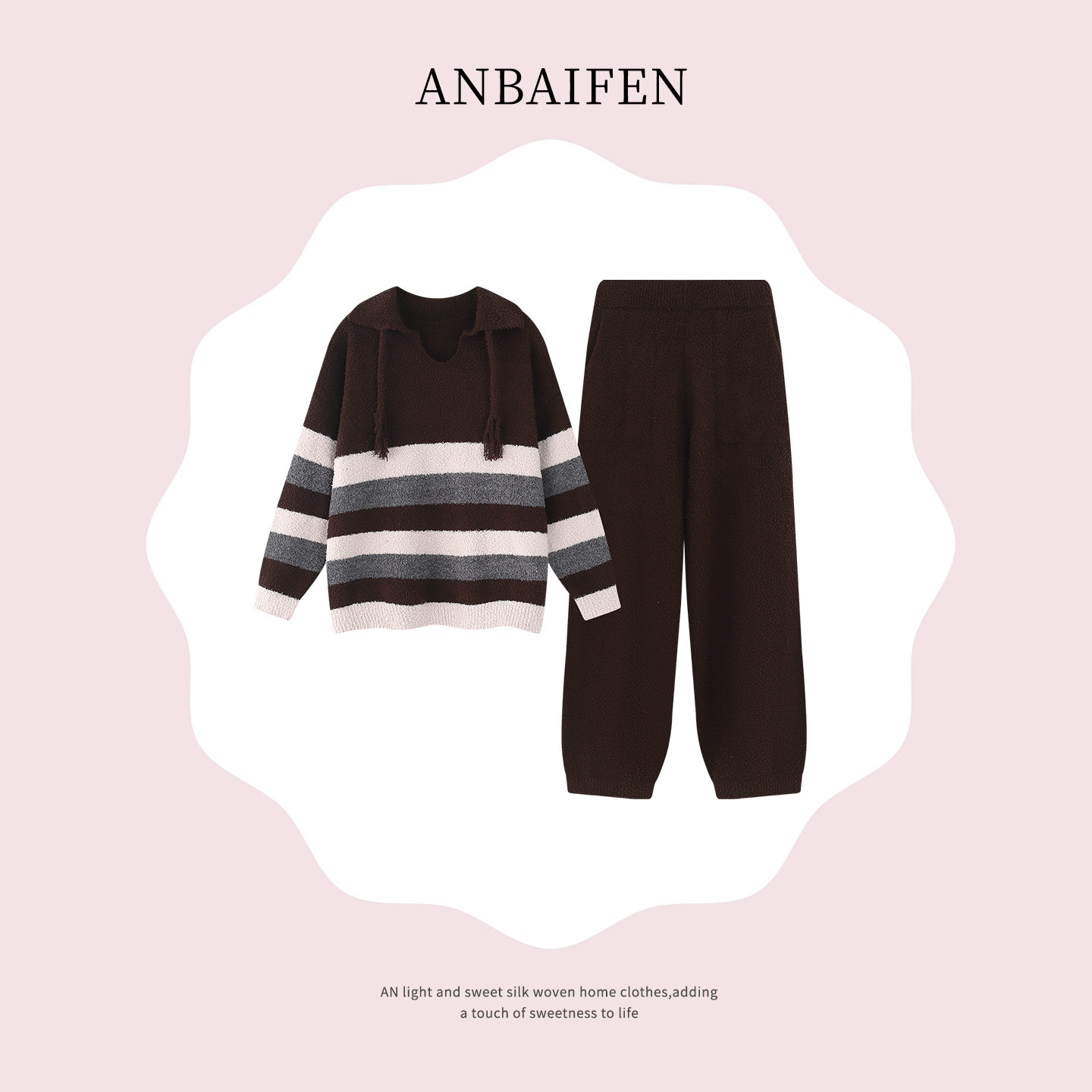 末里末【撞色条纹】新款秋冬半边绒女士睡衣保暖加厚可外穿家居服