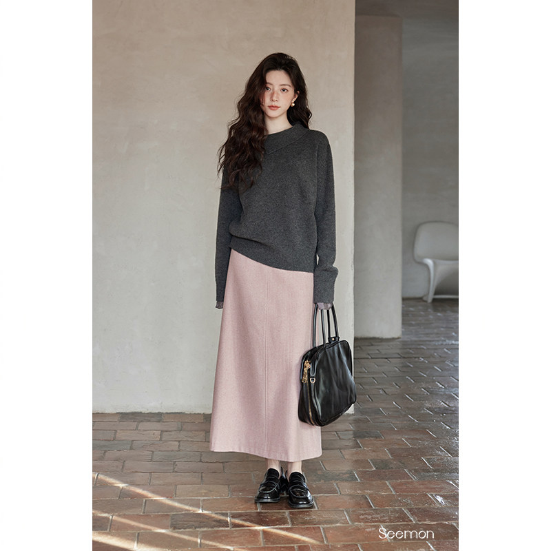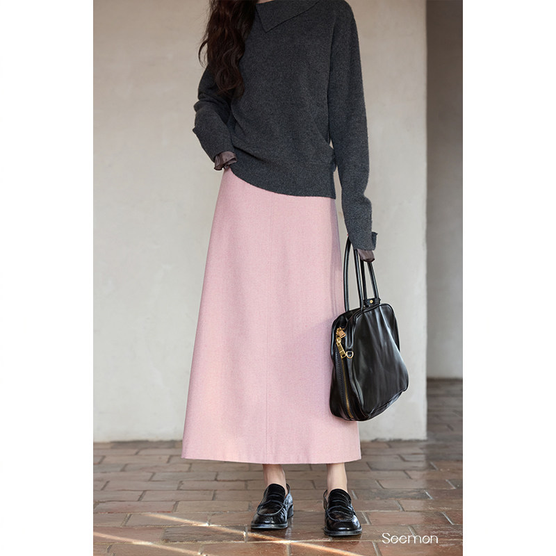夕蒙2026新款冬季韩系气质裙子a字裙绝美巨好看小个子粉色半身裙
