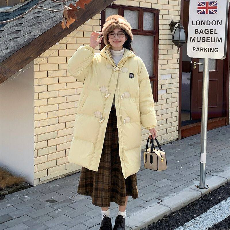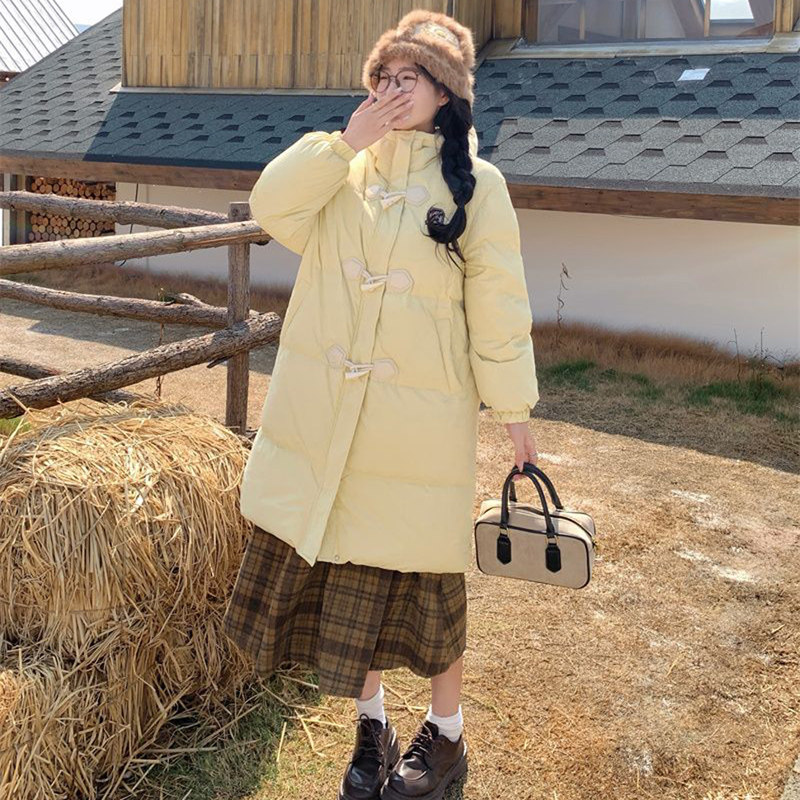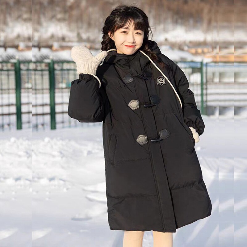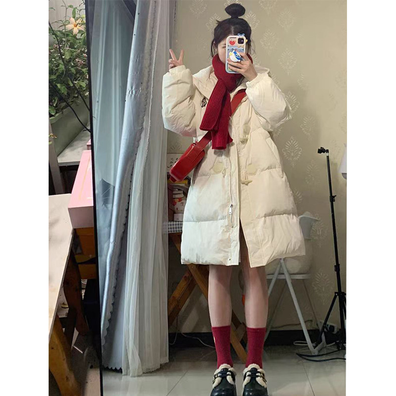 户外2024冬季新款中长款羽绒服女小个子慵懒宽松棉衣黑色白色鸭绒