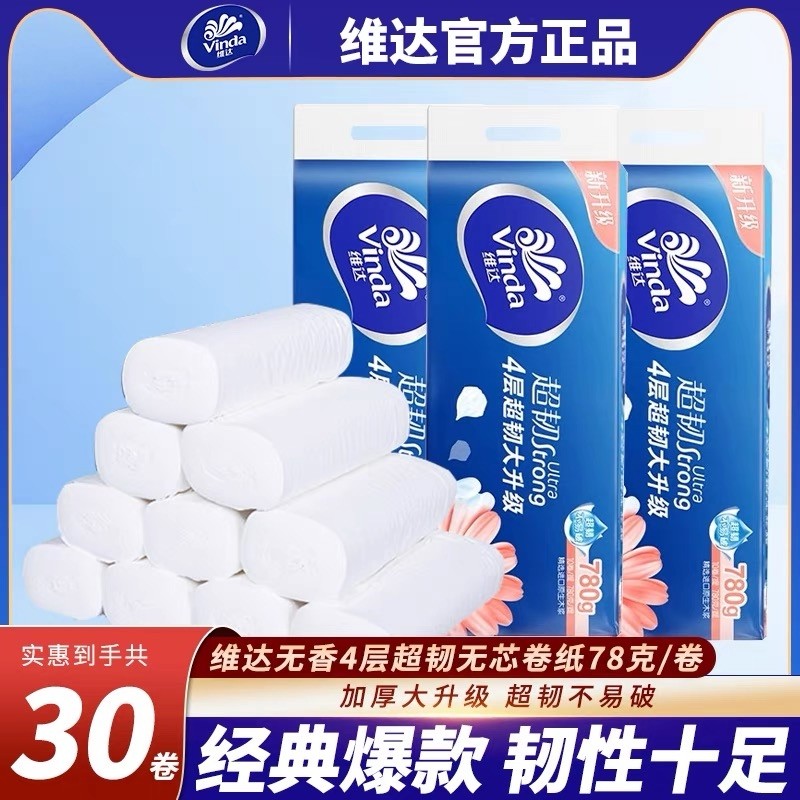维达卷纸无芯卷纸4层780克卫生纸家用实惠纸巾厕纸整箱木浆原生