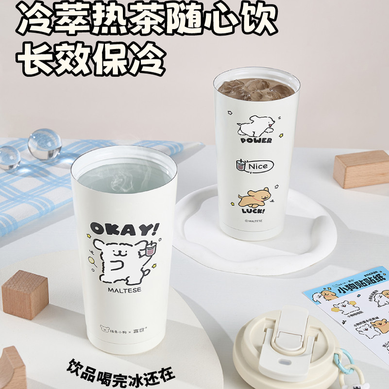言仓线条小狗联名保温杯保冷儿童便携高颜值情侣女生圣诞生日礼物
