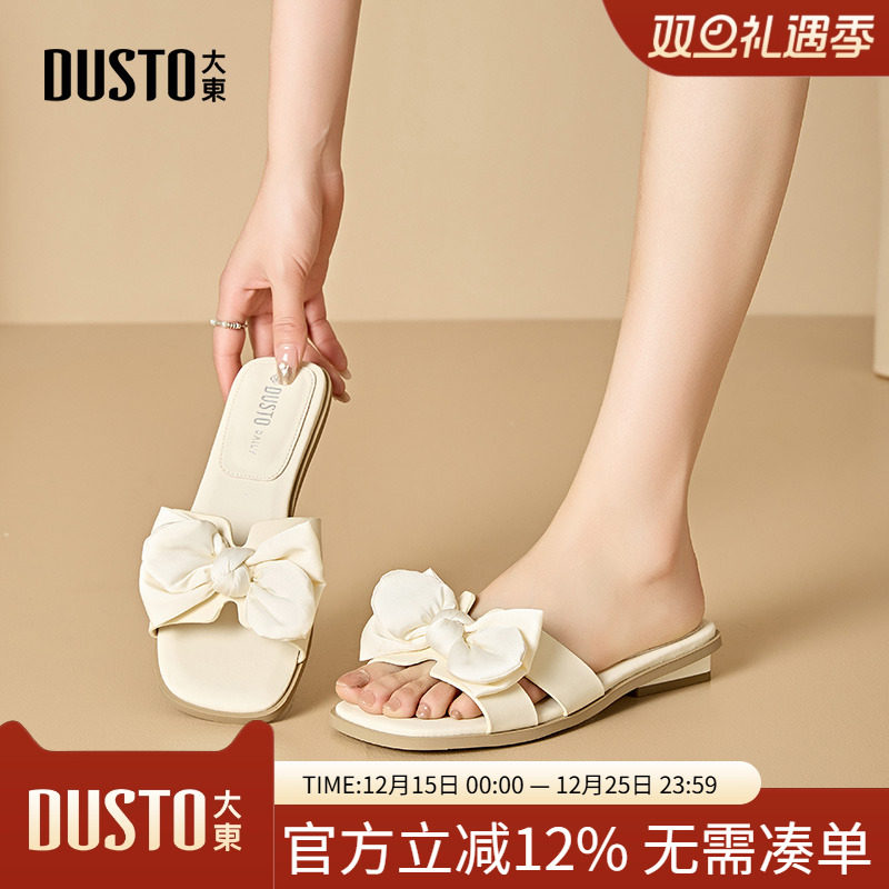 大东居家拖鞋女鞋2025夏季新款时尚方跟低跟方头蝴蝶结凉鞋0040