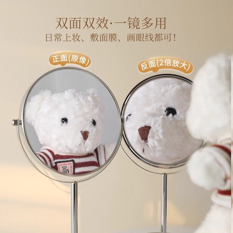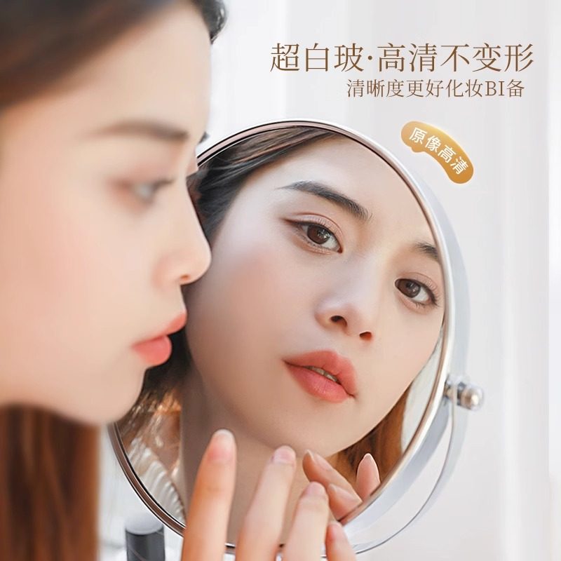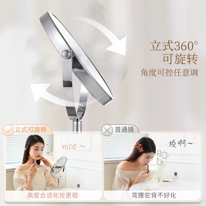 可升降台式化妆镜梳妆台镜双面镜美容院专用学生宿舍放大桌面充电
