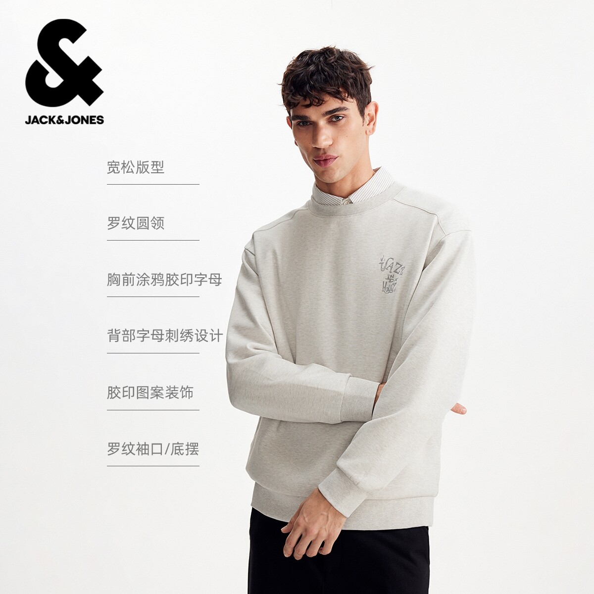 杰克琼斯2026年春季新款男装卫衣经典圆领长袖时尚百搭宽松上衣