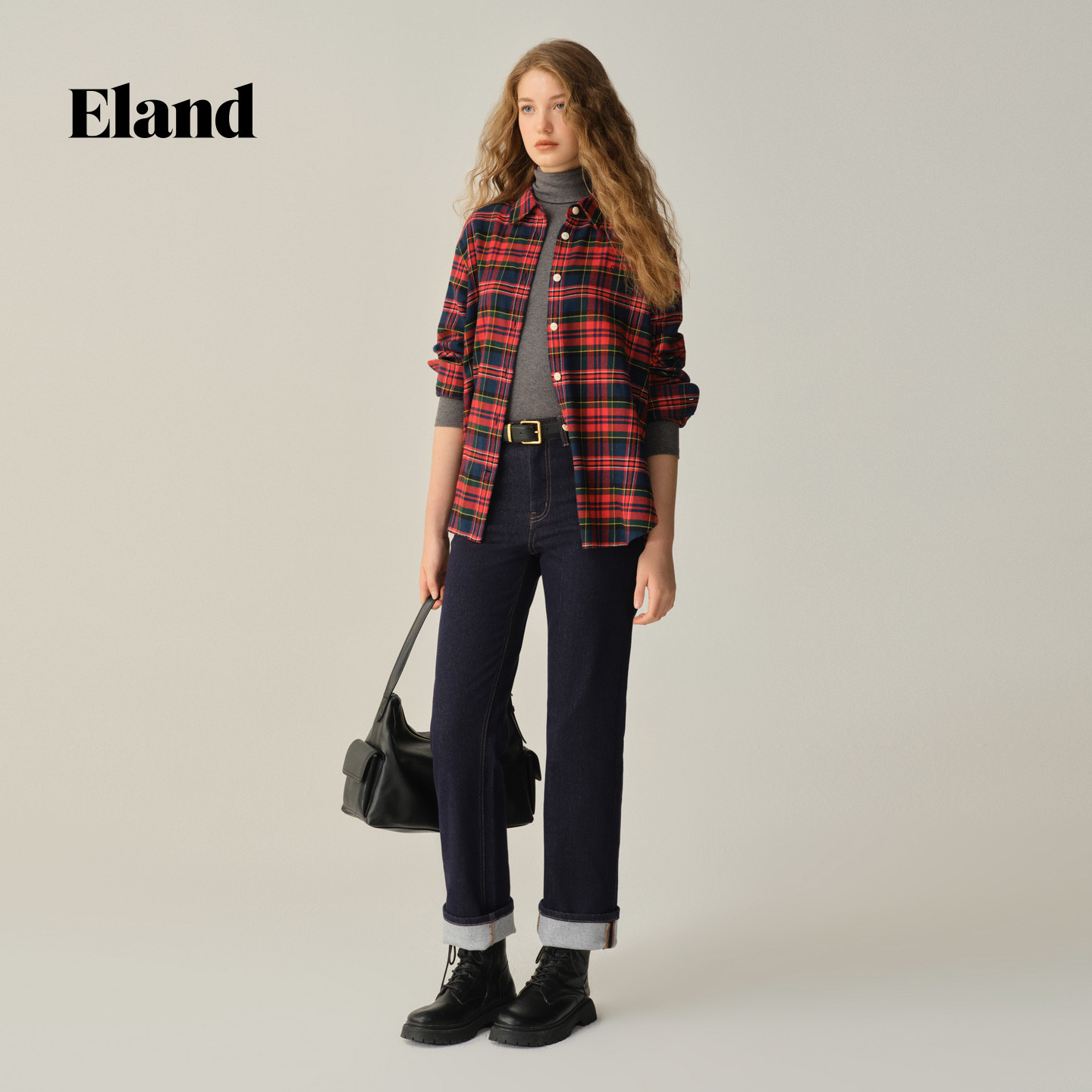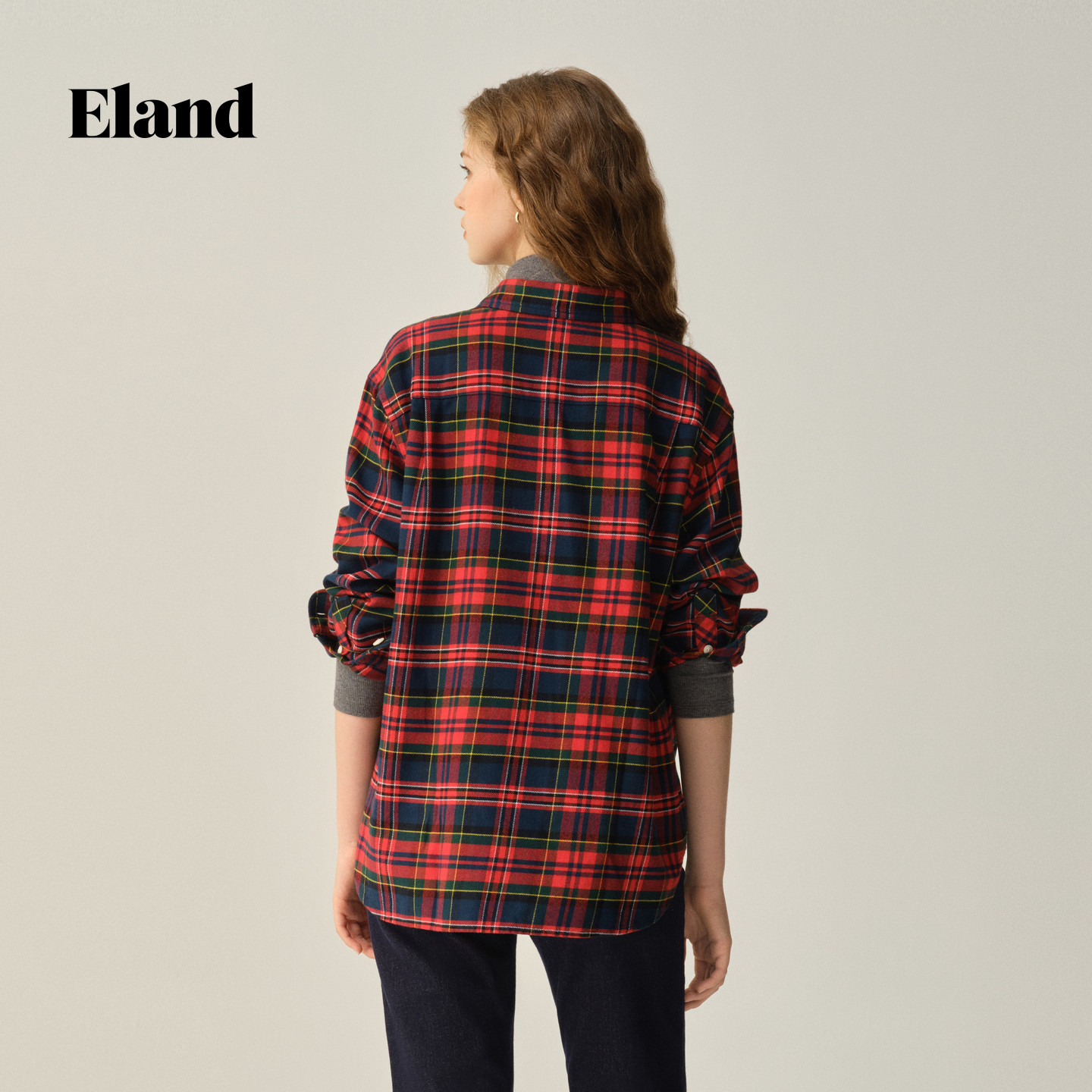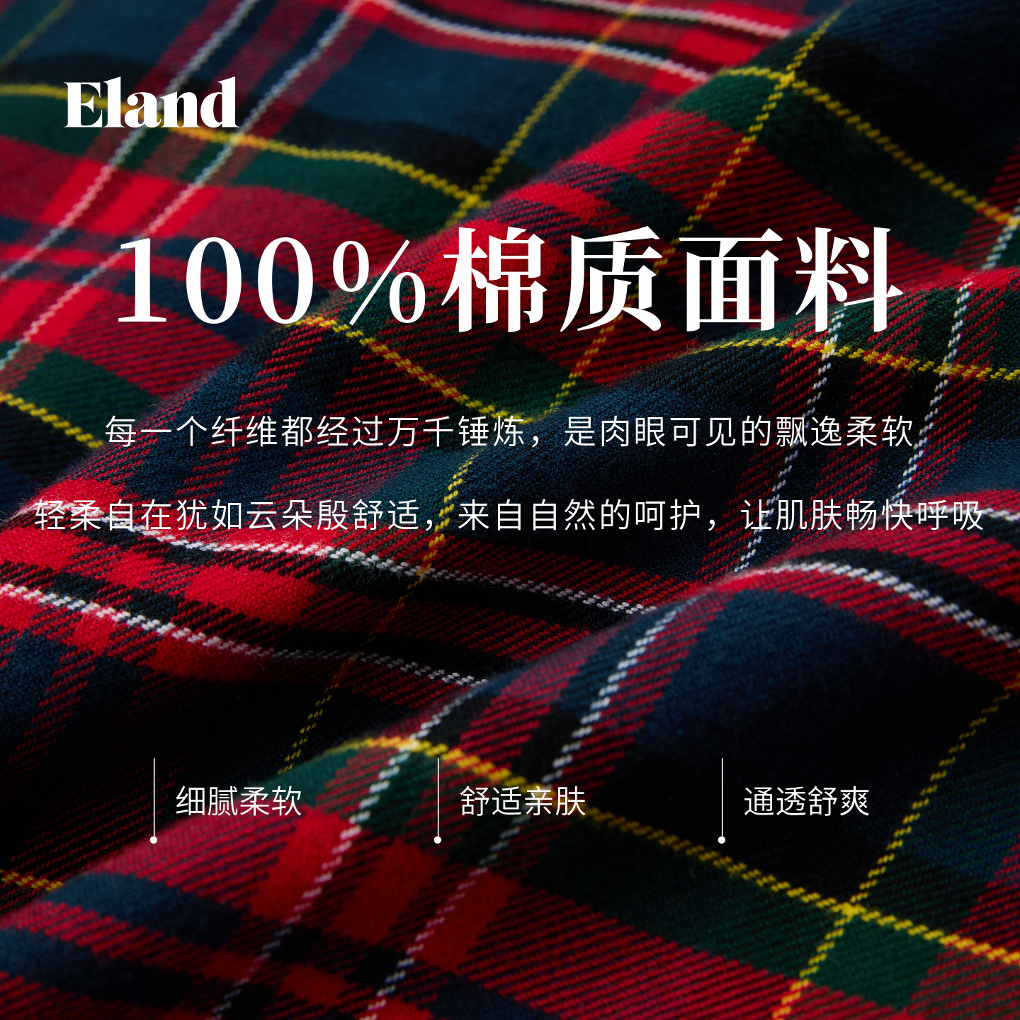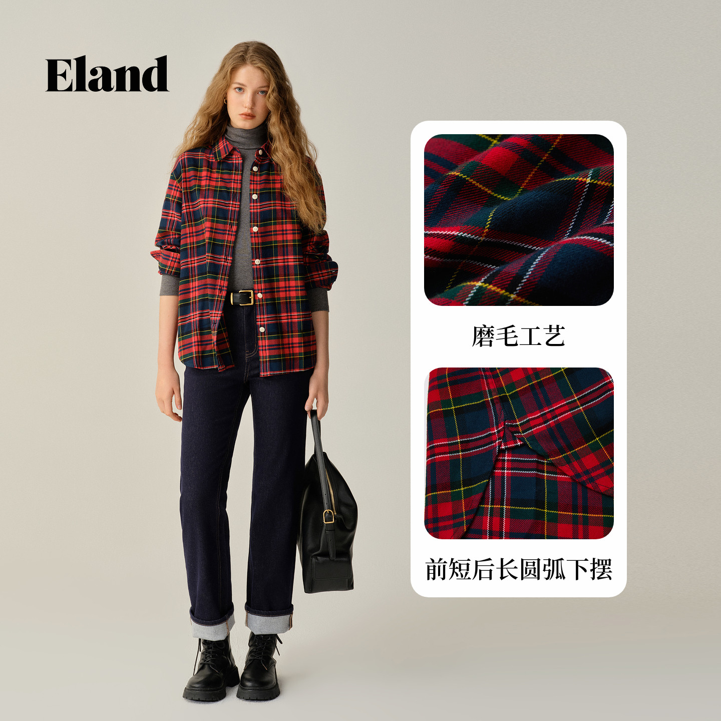 【100%棉】Eland衣恋衬衫女时尚撞色格纹上衣2025冬季新款