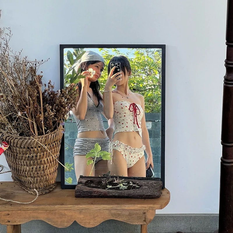 韩系INS小清新甜美印花分体吊带泳衣 纯欲海岛度假泡温泉沙滩泳装