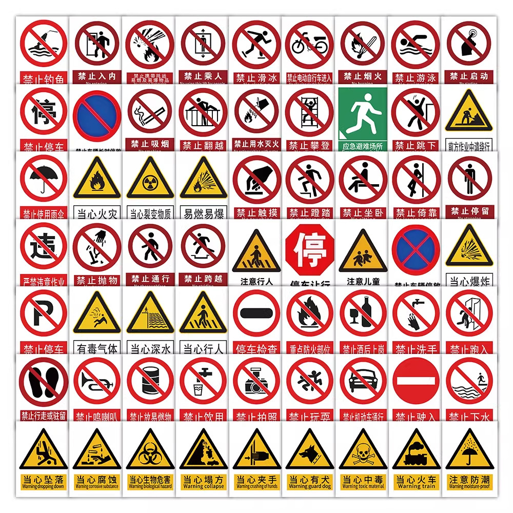 290张安全标志贴纸禁止触摸当心触电警示标识牌设备标签工作台diy
