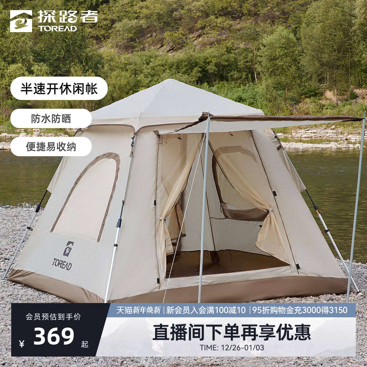 探路者帐篷遮阳户外野营防风防水双门双窗大容量自动3人速开帐