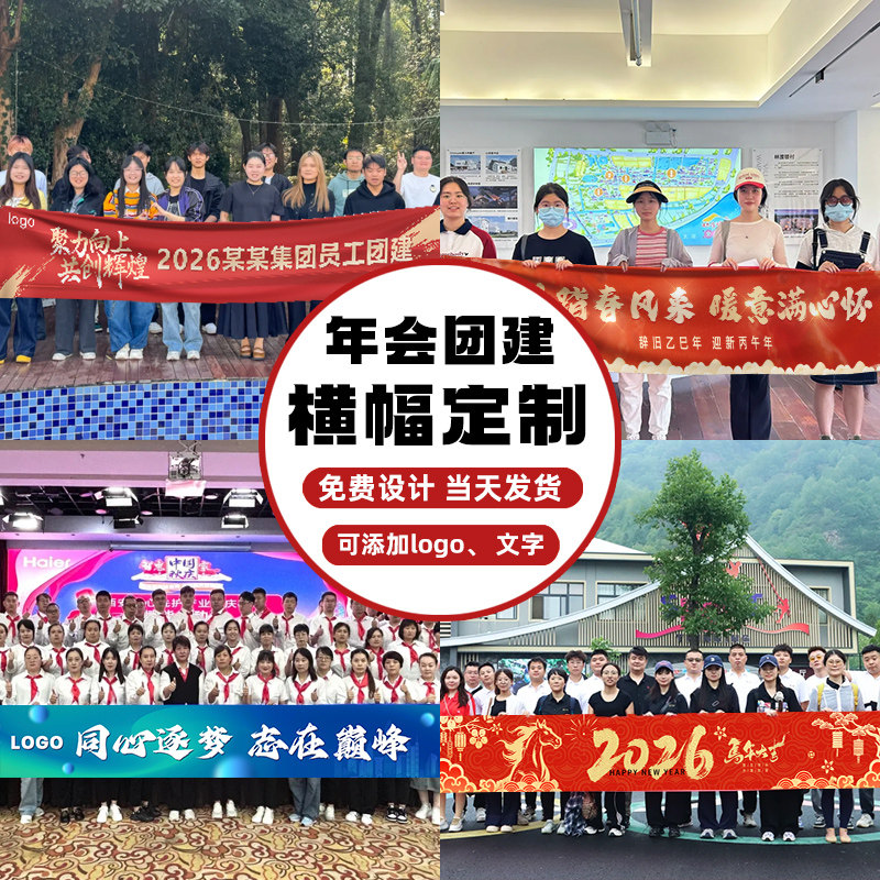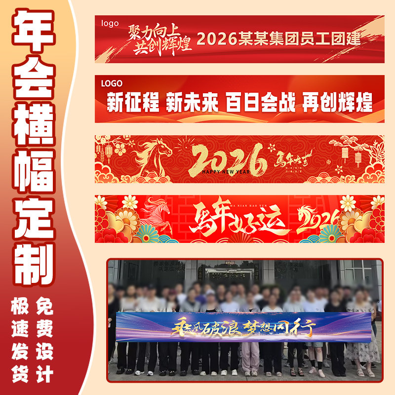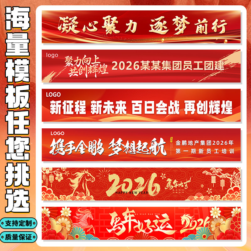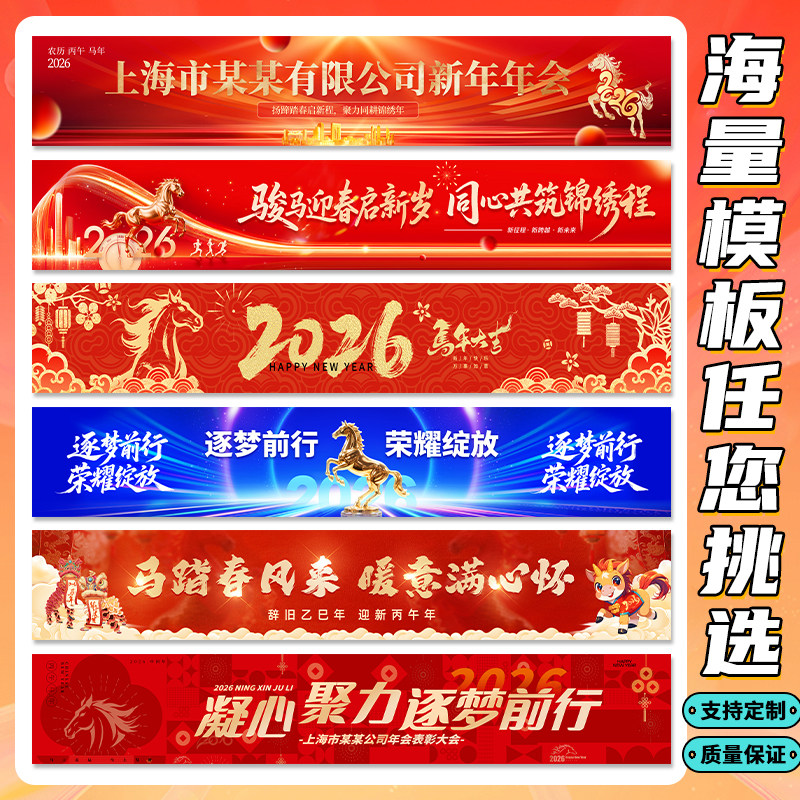 年会横幅定制公司春节跨年晚会标语手拉条设计企业过新年周年庆团建活动旗帜装饰2026马年尾牙宴彩色条幅定做