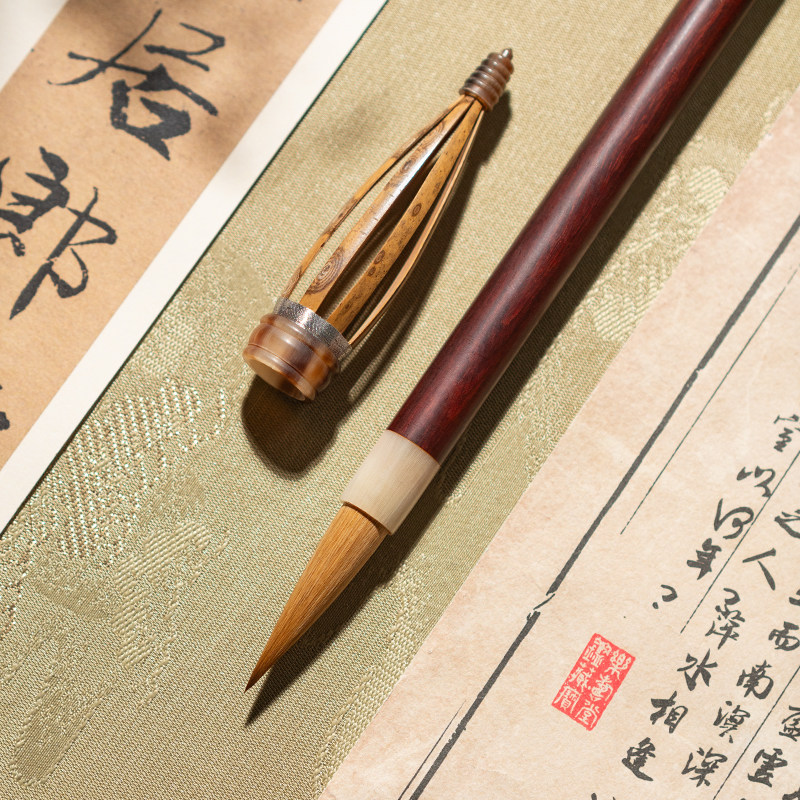 张小凤 长天一色 印度小叶紫檀牛角湘妃竹狼毫兼毫书法毛笔湖笔大楷书行书行楷草书送礼盒文房四宝专业级收藏