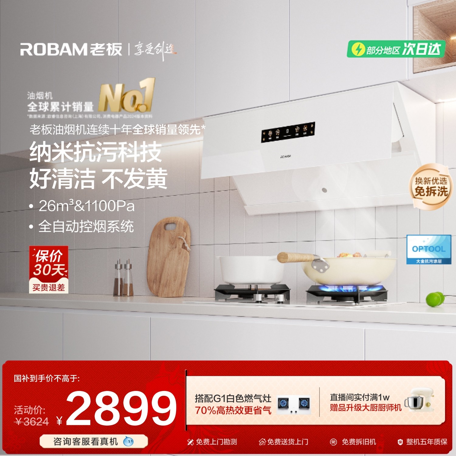 【纳米抗污】老板盐系G1吸油烟机厨房家用智能大吸力官方旗舰白色