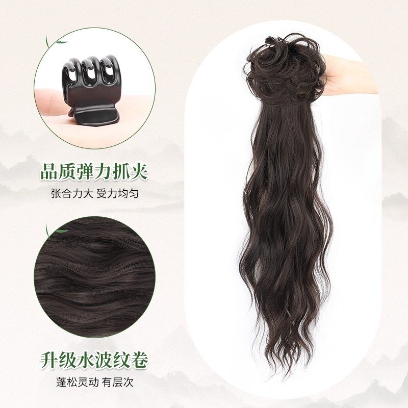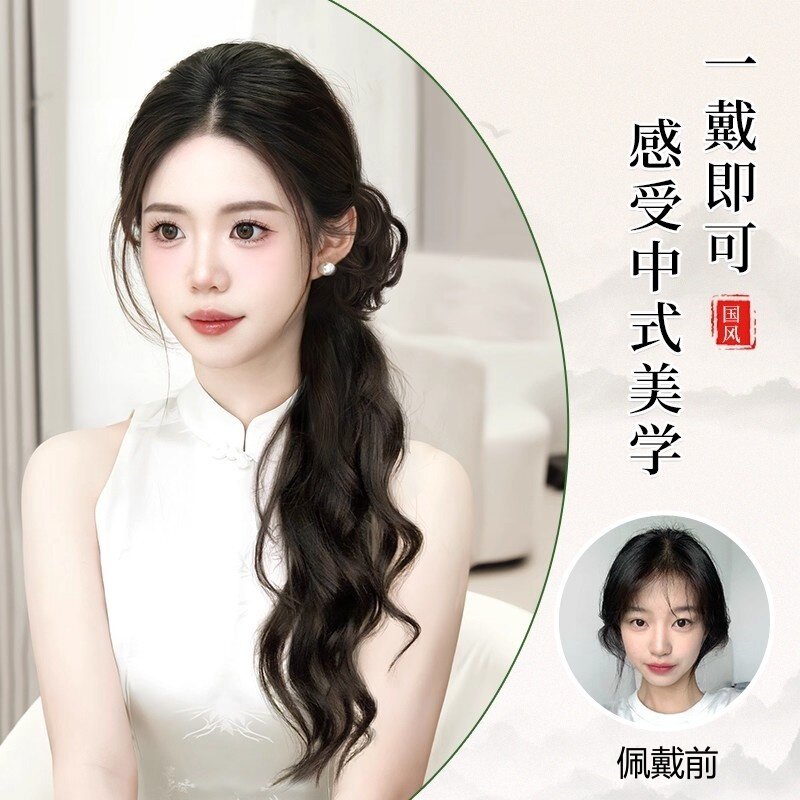 假发马尾女新中式抓夹古风汉服假发辫子仿真式旗袍国风微卷低马尾