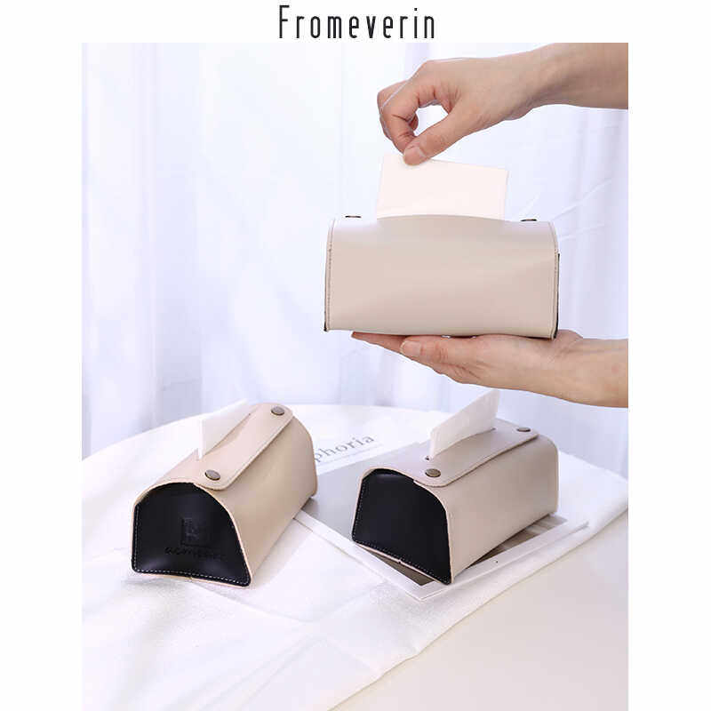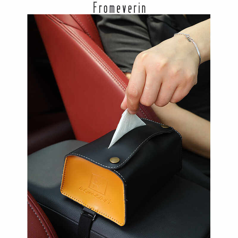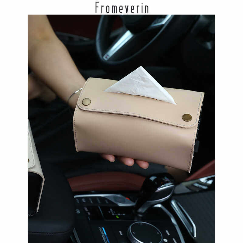 原创马鞍皮车载纸巾盒奶油风高档餐巾纸抽盒扶手箱椅背挂式抽纸套