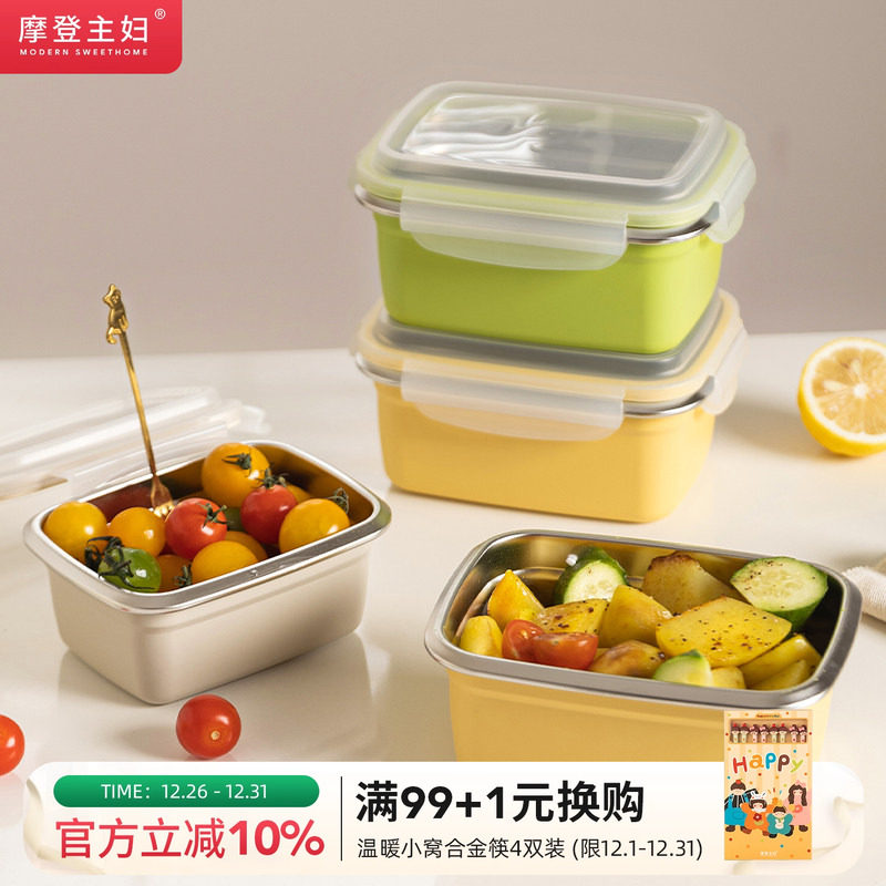 摩登主妇304不锈钢保鲜盒食品级水果便当盒饭盒小学生水果外带盒