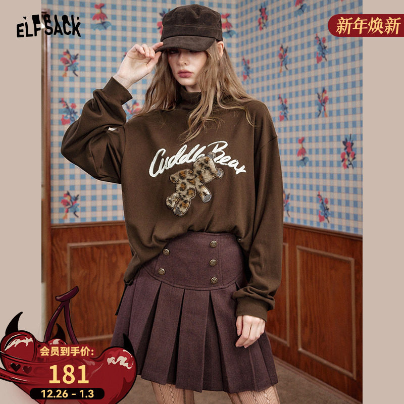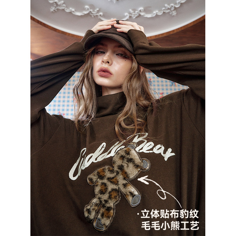 妖精的口袋复古咖色豹纹高领长袖t恤女2025年早秋新款内搭打底衫