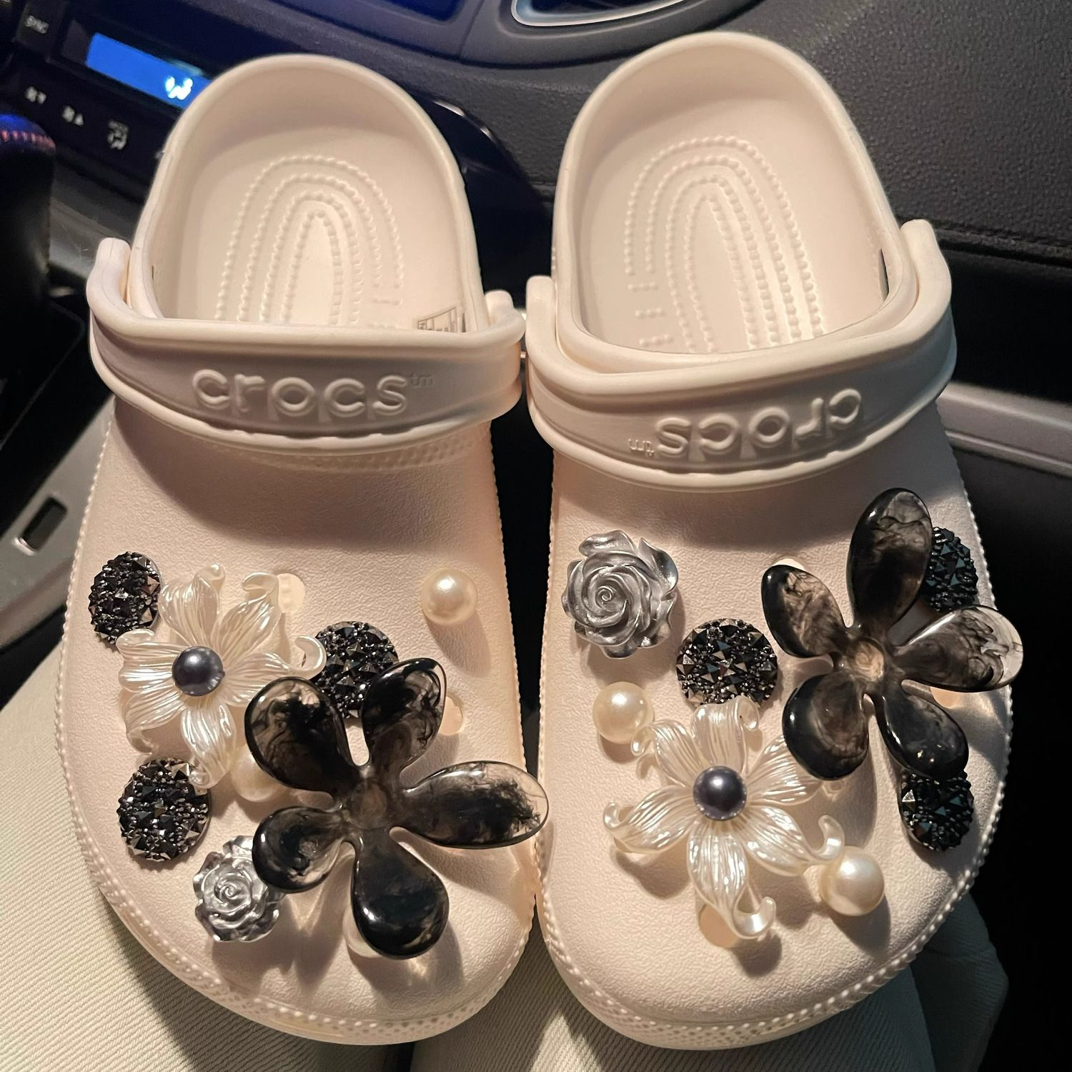 洞洞鞋配饰水墨风蝴蝶卡洛驰鞋花适配Crocs扣女diy装饰卡扣珍珠