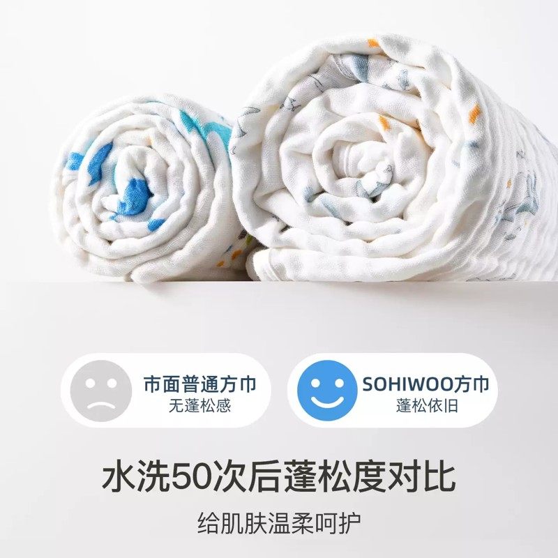 sohiwoo婴儿毛巾小方巾洗脸巾新生儿纱布拍嗝巾a类纯棉洗澡巾母婴
