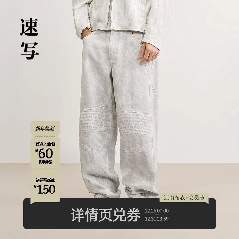 [商场同款]速写男装2025春新品直筒牛仔裤机车拼接潮9P2E11000