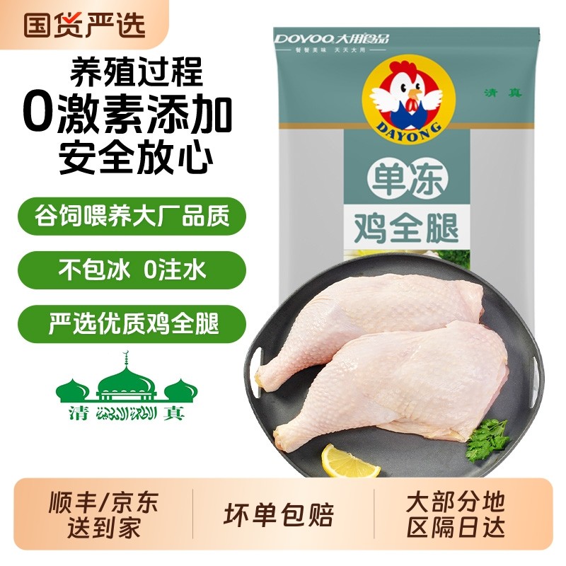 原切鸡全腿手枪腿大鸡腿清真新鲜冷冻健身1kg*2袋生鲜鸡肉腿烧烤