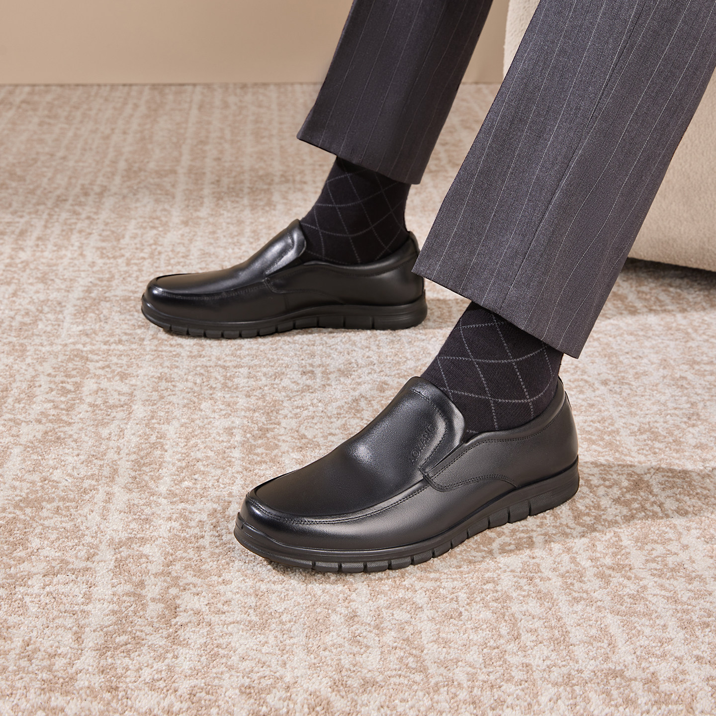 奥康春秋季商务休闲皮鞋男真皮软底乐福鞋舒适一脚蹬套脚爸爸鞋