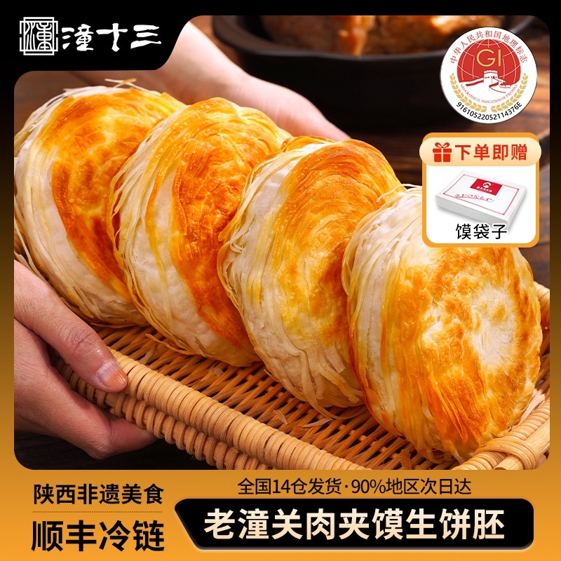 潼十三潼关千层饼肉夹馍饼胚冷冻速食早餐酥烧饼家商用陕西特产