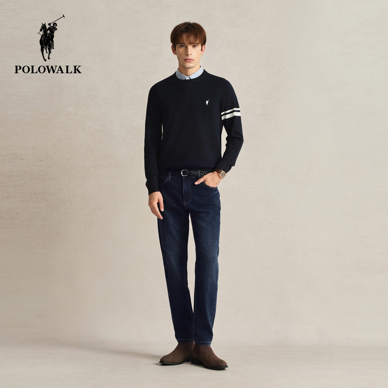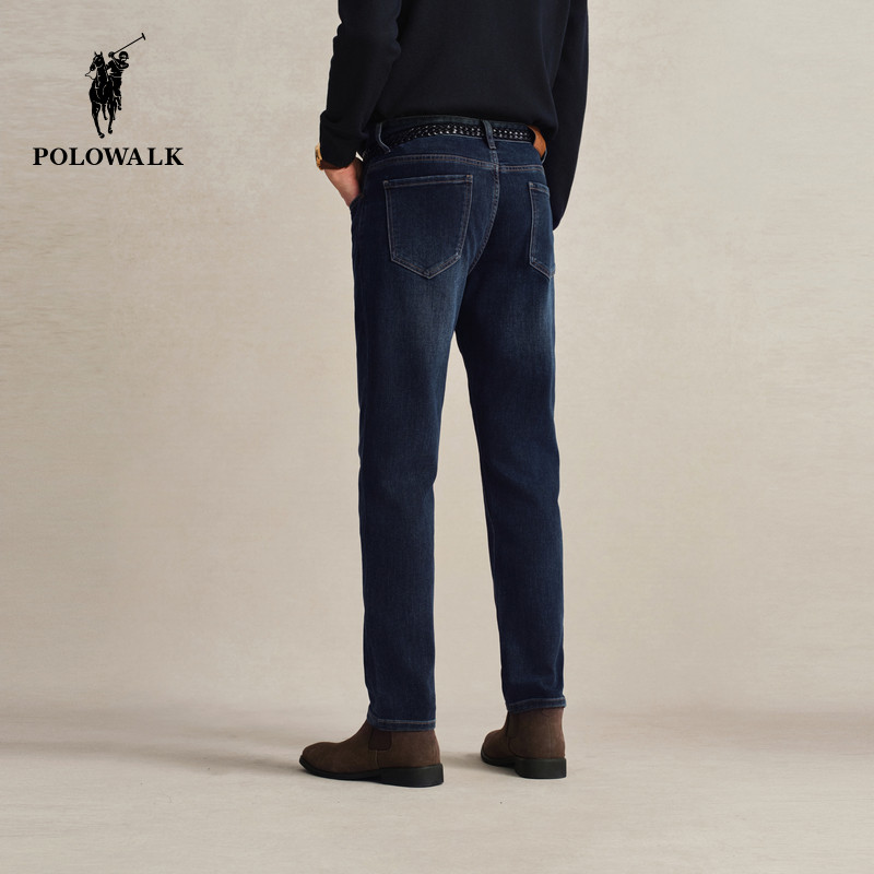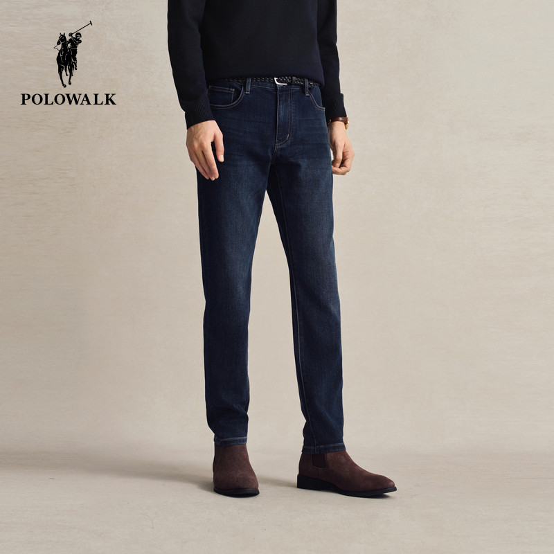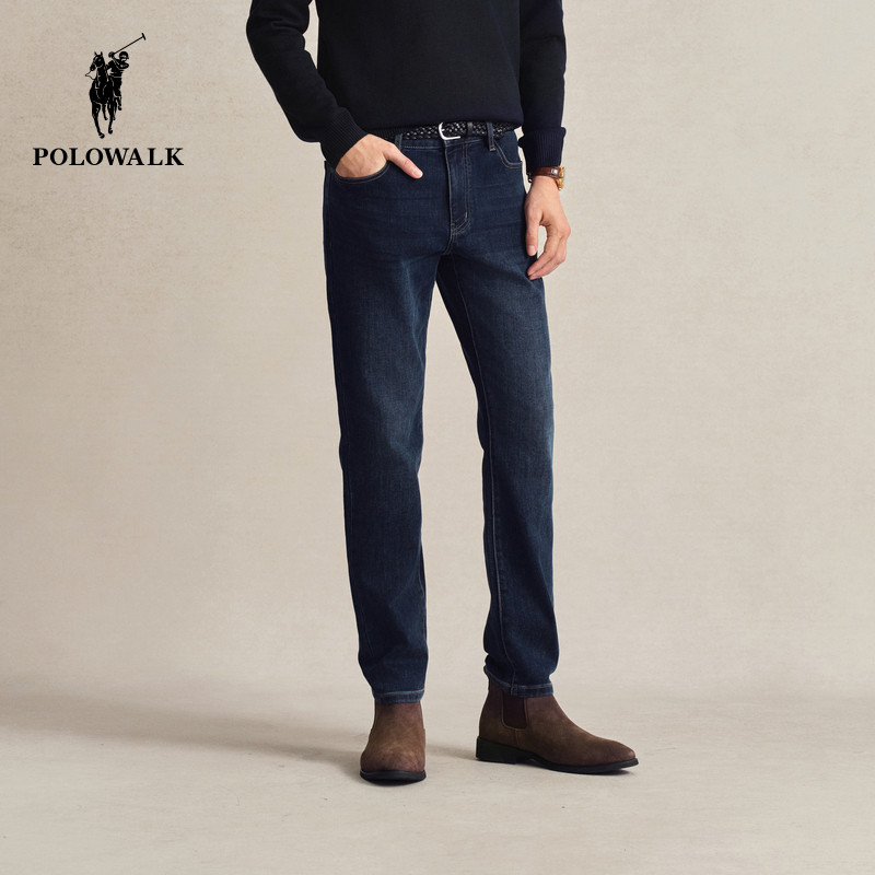 POLOWALK直筒牛仔裤男士秋冬新款深色显瘦下装时尚百搭质感长裤