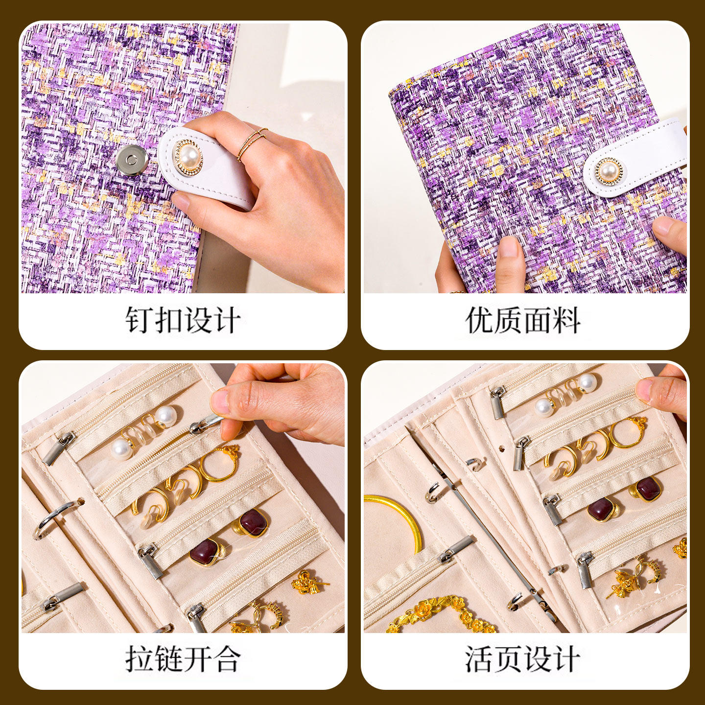 小香风首饰收纳包饰品专用黄金手饰收纳册书2025新款旅行便携收纳本耳环项链手链手镯戒指包密封袋珠宝便携式