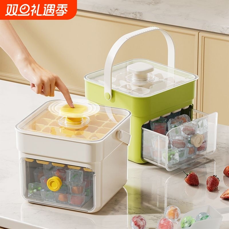 按压冰格冰块模具制冰盒冻冰球神器磨具大容量储冰家用食品级冰箱