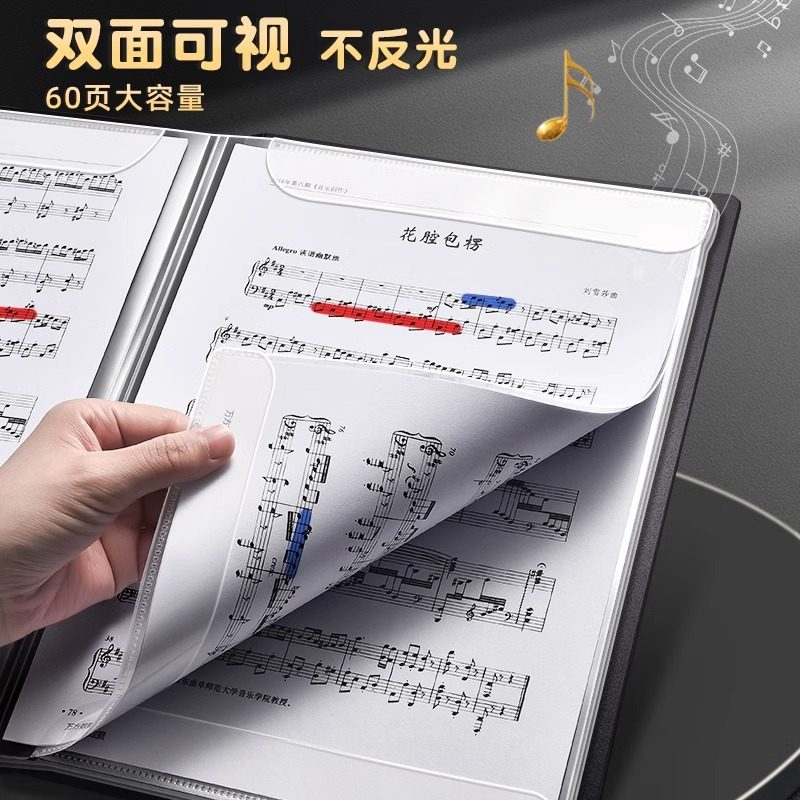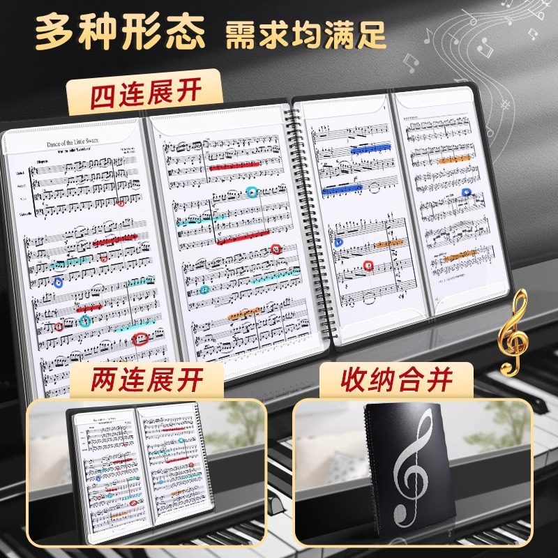 升级可四连谱夹钢琴乐谱夹文件夹展开式不反光学生曲谱琴谱折叠透明插页吉他歌谱活页音乐收纳册本合唱歌谱子