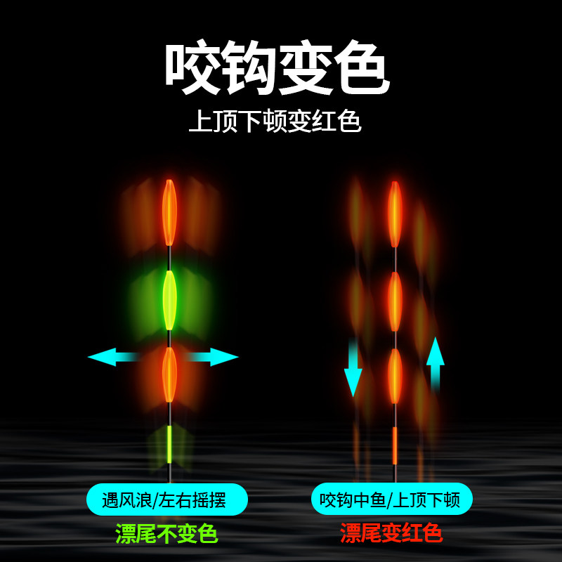 水无影夜光漂咬钩变色新款夜光浮漂高灵敏电子漂高亮鲫鱼漂钓鱼漂