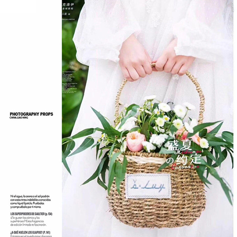 旅拍婚纱拍摄影道具编织袋手提包影楼外景拍照田园清新主题花篮