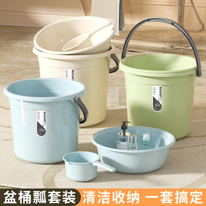 水桶塑料桶学生宿舍大号加厚住校脸盆三件套圆形大容量洗澡储水桶