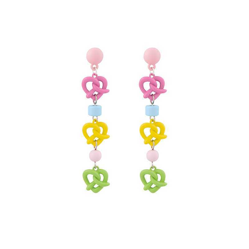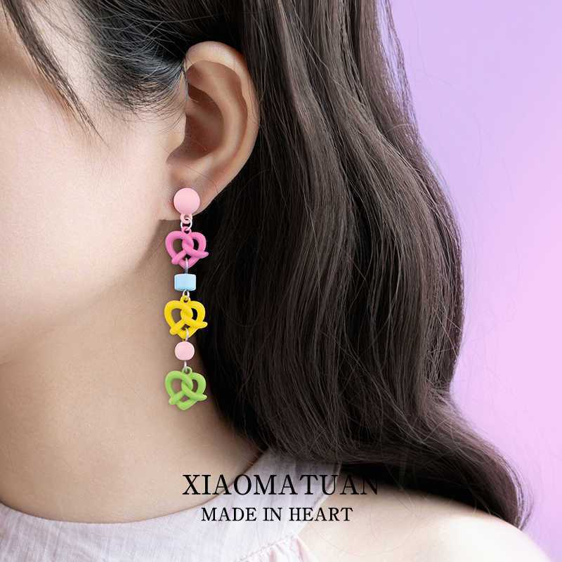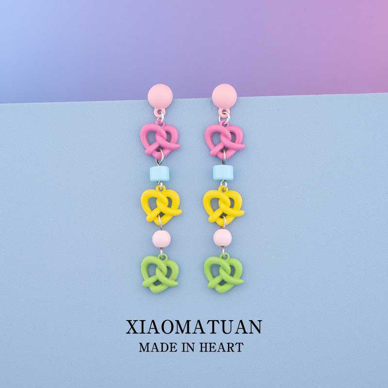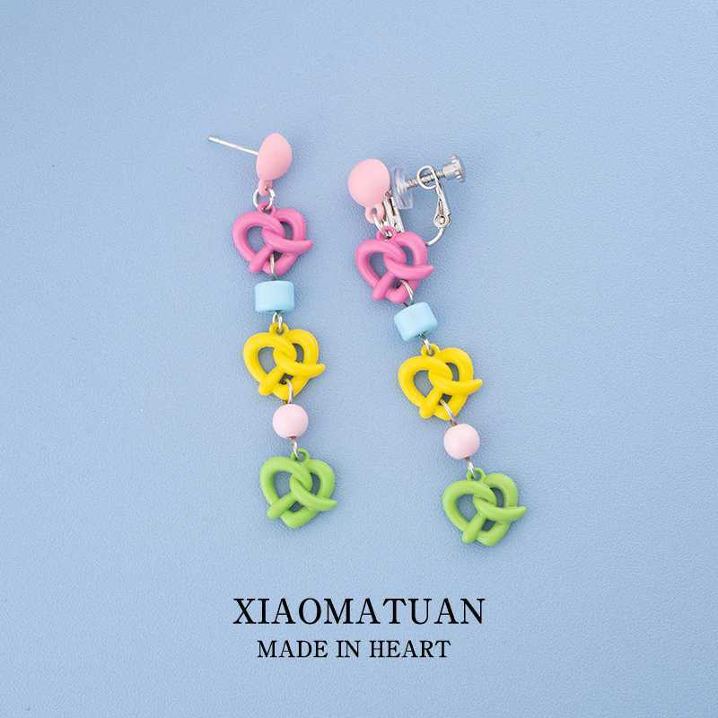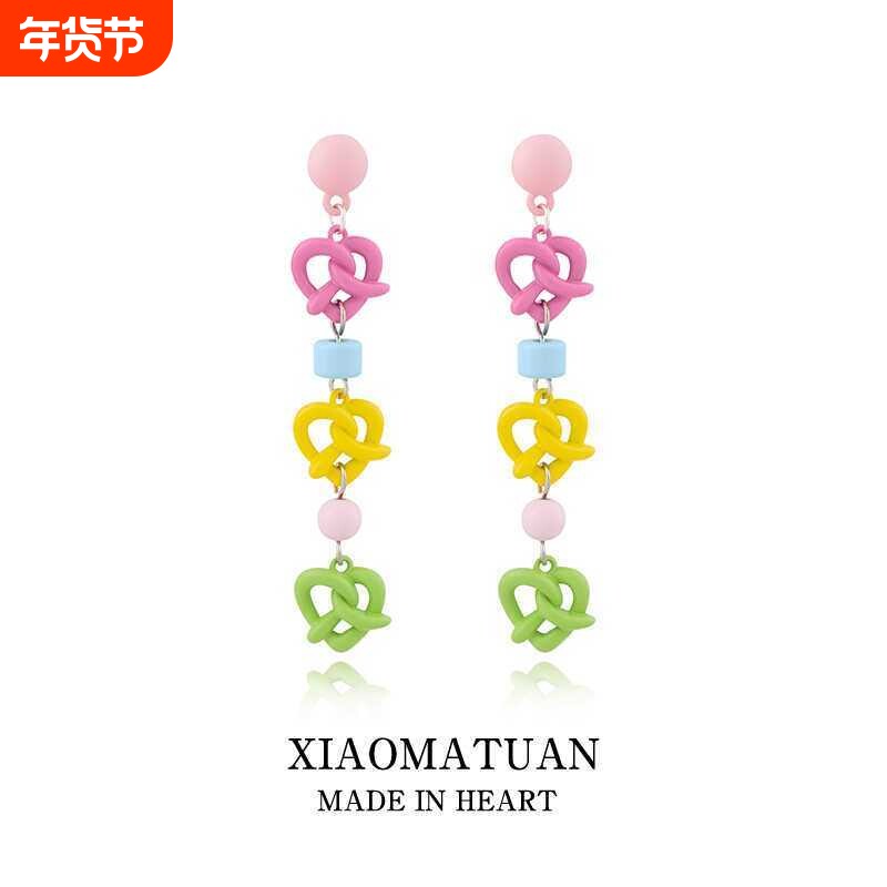 原创多巴胺糖果色爱心耳环女新款甜美串珠高级感小众耳钉耳饰耳夹