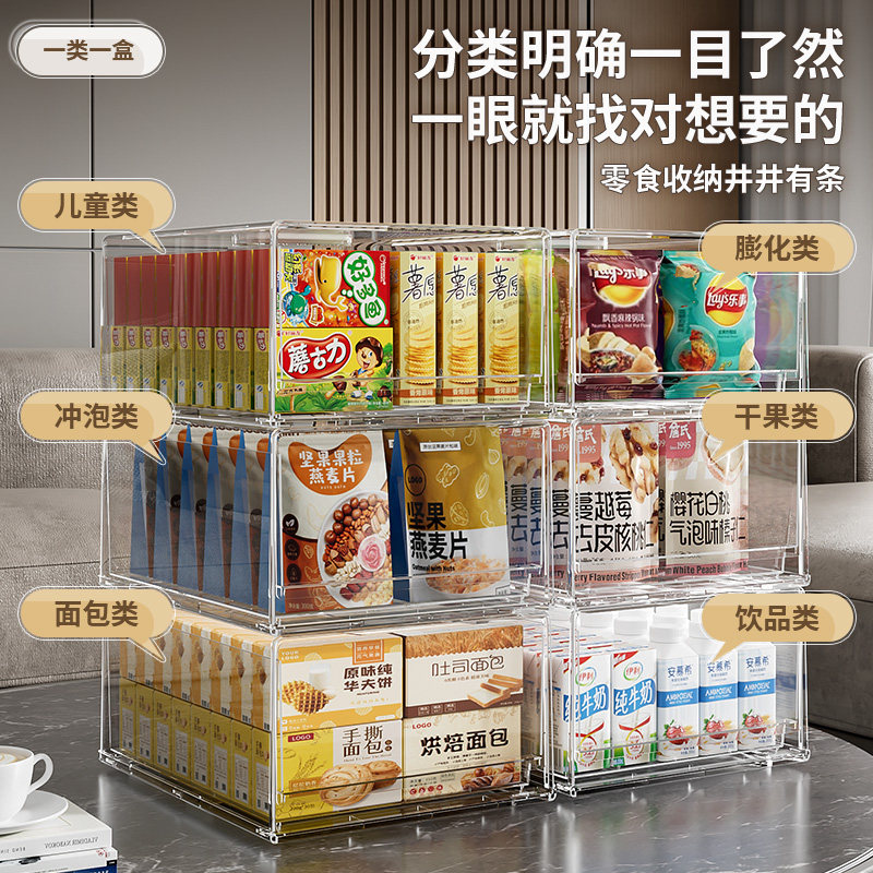 桌面零食收纳盒高颜值杂物小吃瓜子抽屉式透明整理盒收纳箱神器