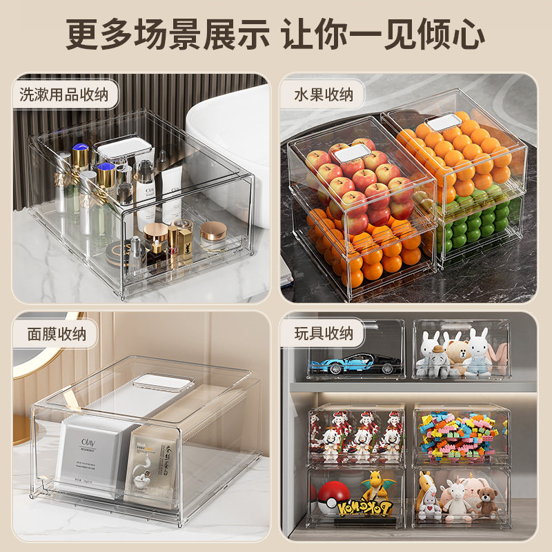 桌面透明亚克力抽屉式收纳盒面膜护肤化妆品杂物收纳筐零食置物架