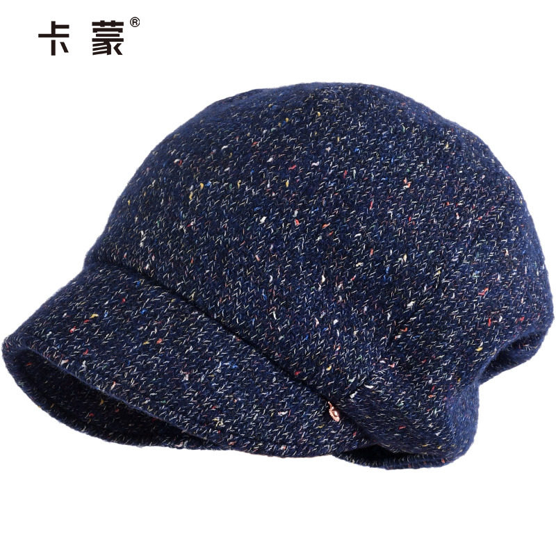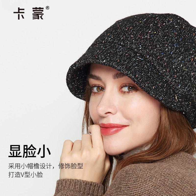 卡蒙加厚保暖堆堆帽子女冬鸭舌帽秋冬帽檐款冷帽大头围针织贝雷帽