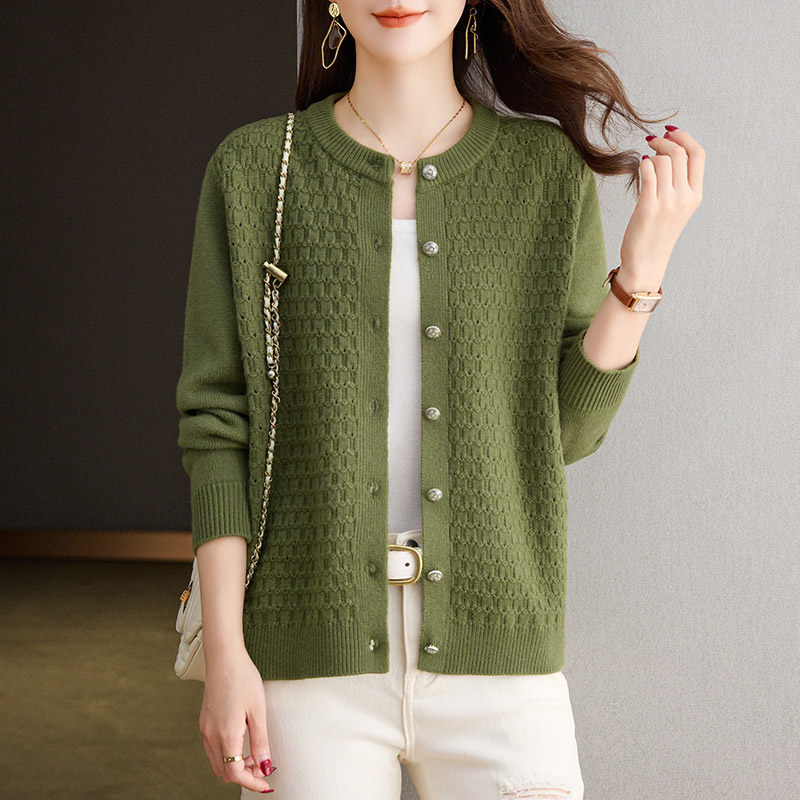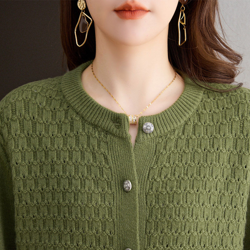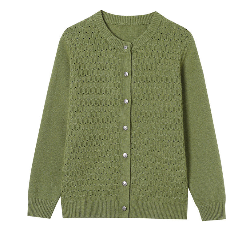 恒源祥纯羊毛毛衣秋季开衫女装新款圆领妈妈宽松针织百搭上衣外套