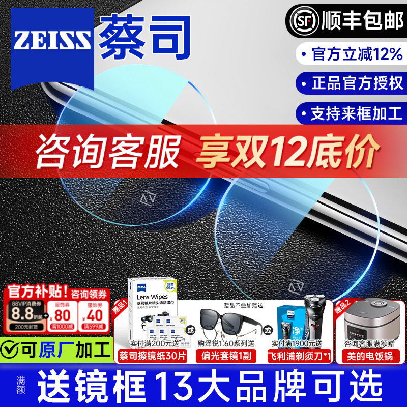 官方正品保证 送镜框 实体店同款 蔡司镜片