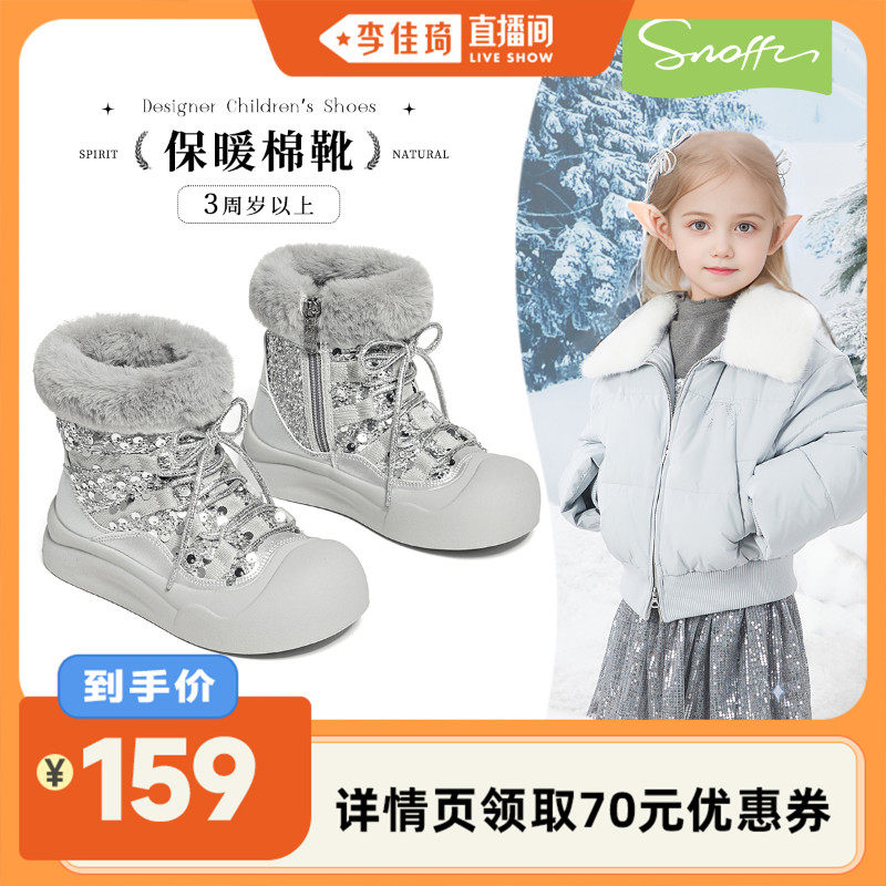 【李佳琦直播间】斯纳菲女童棉靴冬季加厚保暖棉鞋公主风运动鞋