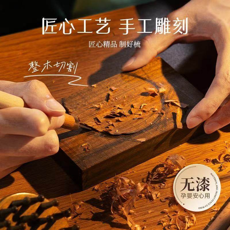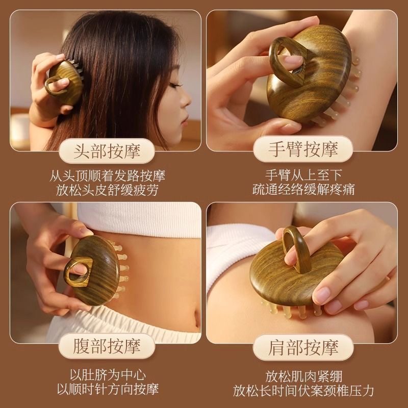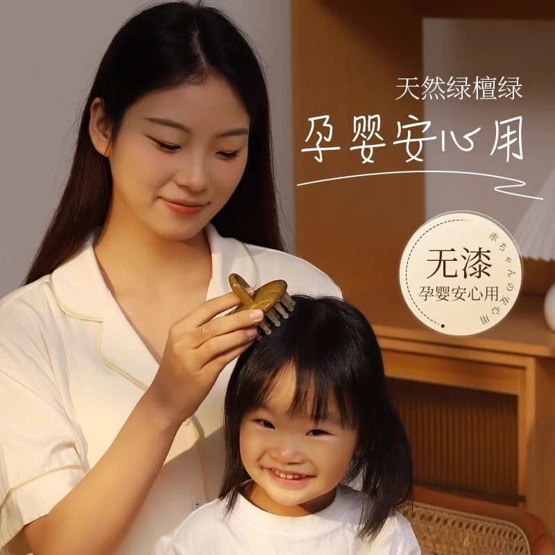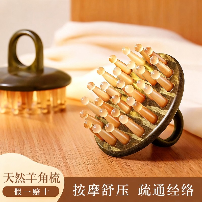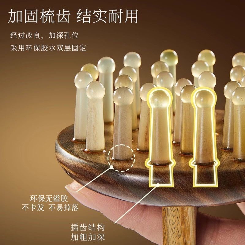 头皮按摩梳绿檀木头皮部按摩梳羊角疏通防脱发神器经络梳子女家用