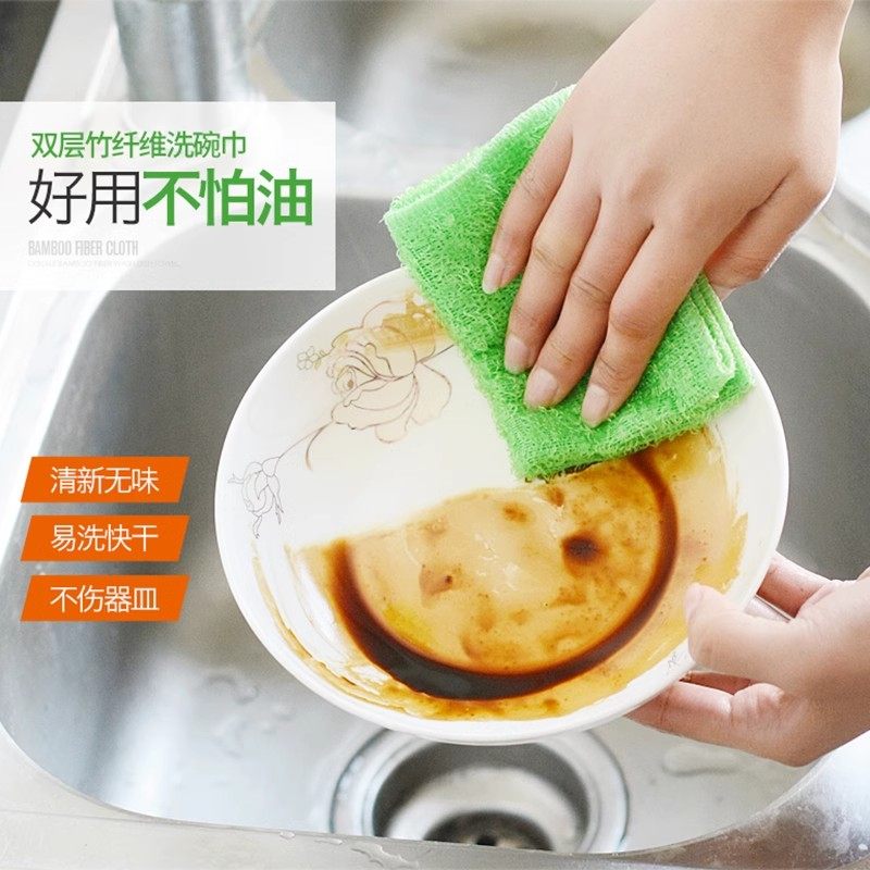 不易沾油厨房洗碗布抹布吸水家务清洁毛巾擦桌刷碗家用百洁竹纤维